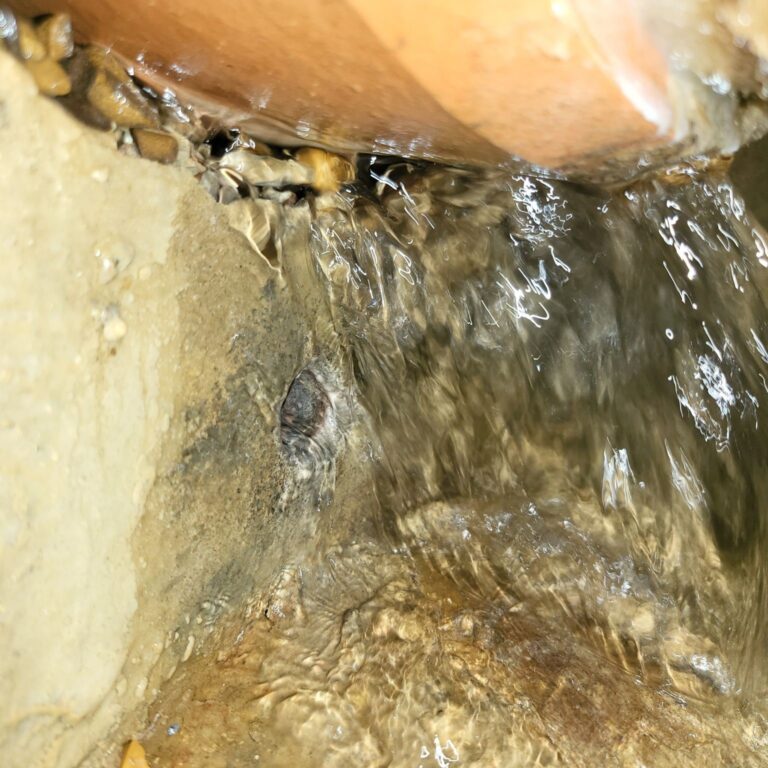 Before and after of a spray-lined gully to stop leaking