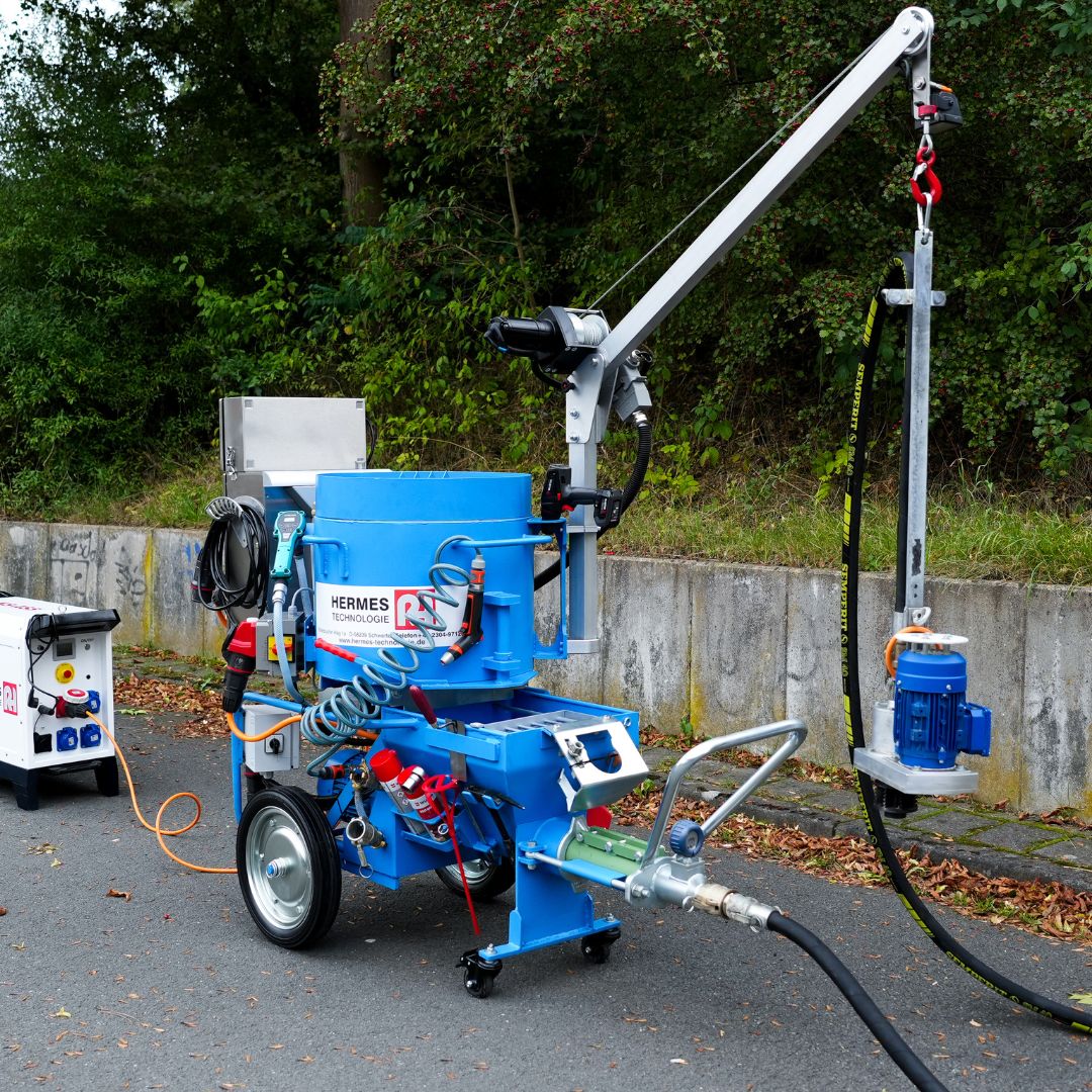The Hermes Technologie, M-Coating System is a semi-automatic manhole coating system designed for mobile applications and efficient rehabilitation of wastewater structures. Developed using over 20 years of industry experience, this compact system enables the professional refurbishment of both round and square sewer shafts using the centrifugal coating method.